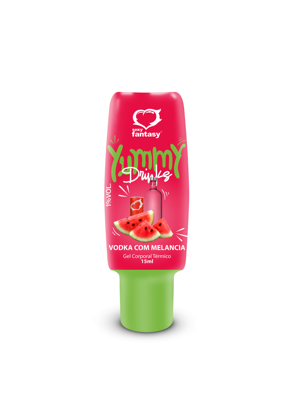 Yummy Drinks é a linha alcóolica Sexy Fantasy. O Yummy Drinks com sabor de Vodka com Melancia possui um gosto incrível e é ideal para aquela brincadeira antes da relação, tornando o momento ainda mais delicioso.